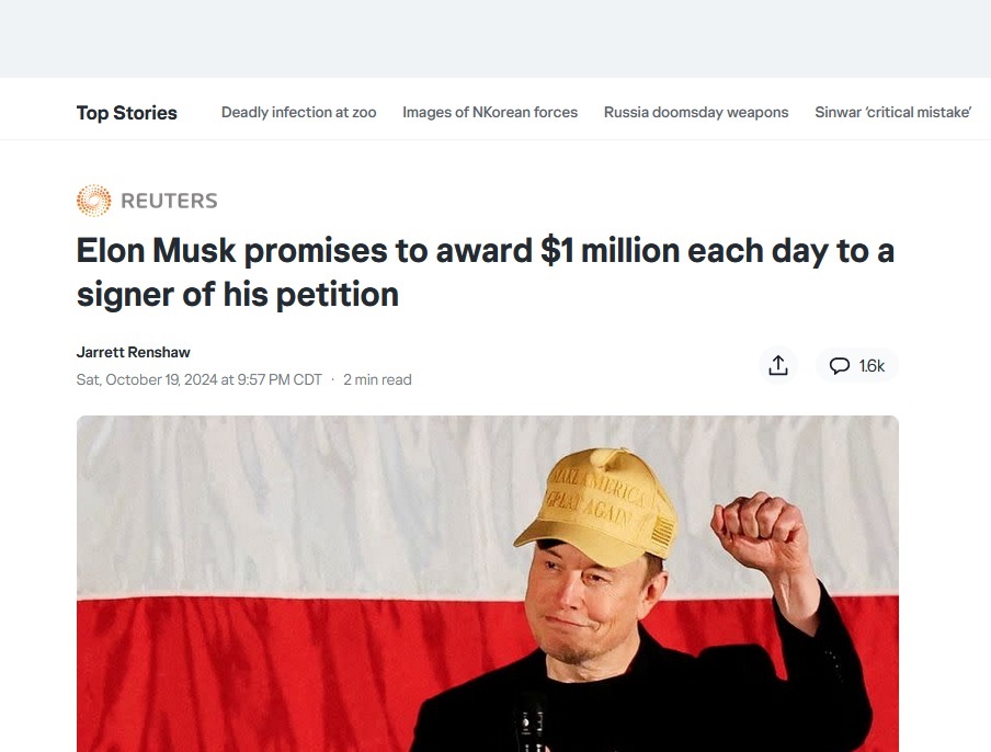 OK, this seems ABSURD in a democracy, Paying people, even if it is like a lottery, where not every person gets paid TO SIGN A PETITION!